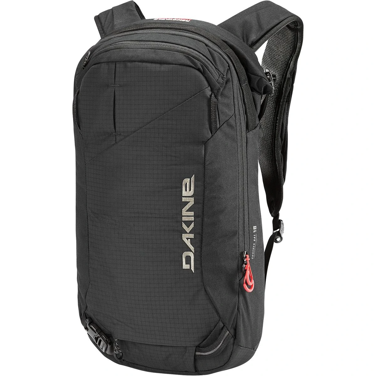 Poach epic backcountry lines with the Dakine Poacher RAS 18L pack. The lightweight and slimmed down pack cuts back on size to carry the essentials needed during single day missions in the backcountry. When the skintrack turns into technical climbing, strap the skis or board onto the pack with a few carry options to traverse rocky ridgelines or ascend a steep couloir. The zippered front panel easily stores a probe and shovel or other tools that can be accessed quickly in the event of an emergency, and the backpanel main compartment stores a jacket, snacks, water, or anything else to bring along during a day spent in the mountains.