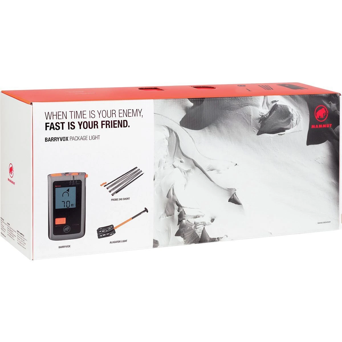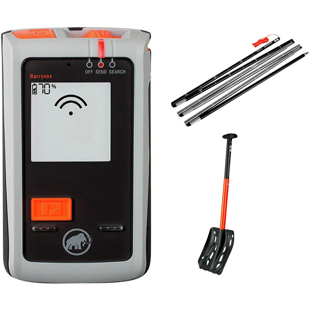 The Barryvox Package Light is Mammut’s lightest package containing all the avalanche essentials required for touring the backcountry. Its Barryvox Beacon is incredibly intuitive so backcountry skiers and splitboarders can master the simple interface quickly. With a triple antenna, the Barryvox boasts an impressive 70-meter digital range through an easy-to-see display that shows distance, direction, and victim number. The Alugator Light and Probe 240 Short are Mammut’s lightest shovel and aluminum probe. The shovel weighs about the same as a soda can, and the probe even less than that.